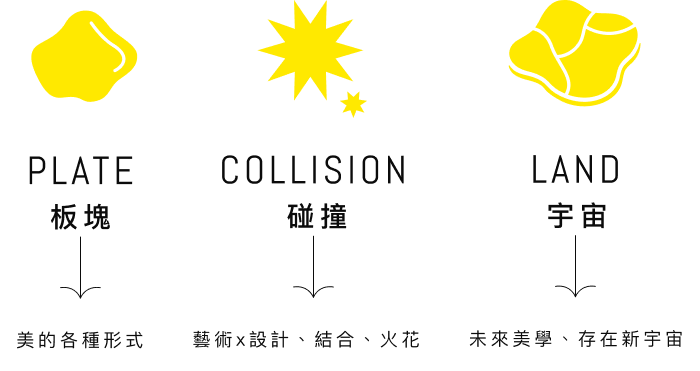 美具有各種形式,如同板塊一般,需要經過碰撞、結合與熔鍊,才能創造出不同的藝術 × 設計樣貌。
